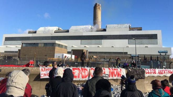 ¶ About 100 protesters marched at Wales’ largest coal-fired power station calling for its closure. The protest at Aberthaw, in the Vale of Glamorgan also called for more renewable energy jobs. In September, the European Court of Justice found the plant had been emitting illegally high levels of air pollution. [BBC South East Wales]