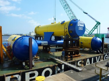 ¶ Engineering giant IHI Corp unveiled an “ocean current power generator” prototype, which harnesses the energy in ocean currents. It will be tested in a demonstration project off the coast of Kagoshima Prefecture. A similar experiment with wave power was announced by Mitsui Engineering and Shipbuilding Co in April. [The Mainichi]