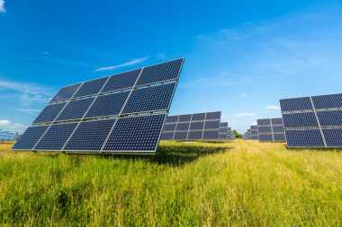 Solar panels at sunset