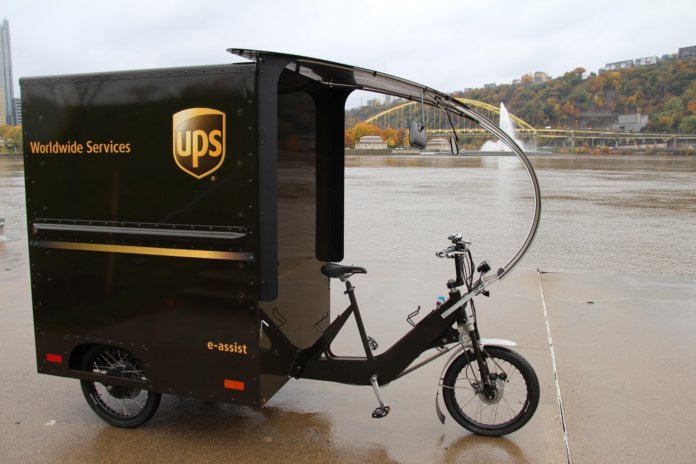¶ UPS is testing an elegant depot-to-door delivery e-bike system in London. The e-bike is powered by a trailer it pulls to deliver its cargo. The trailer can carry up to 440 pounds (200 kilograms) of cargo along with the batteries. The UPS electric trailer delivery trial is being done in London in anticipation of the city’s closure to gas cars. [CleanTechnica]