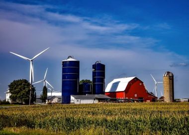 Wind power on a farm (Pixabay image)