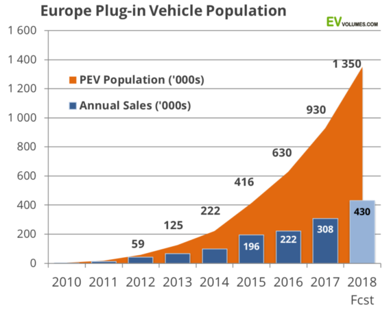 ¶ “European Electric Car Sales Increased 42% In H1 2018 vs H1 2017” • EV data collection and analysis firm EV Volumes have just published European plug-in vehicle sales results for the first half of 2018. Most notably, there was a 42% market growth year over year, and the number of plug-in vehicles in Europe passed one million. [CleanTechnica]