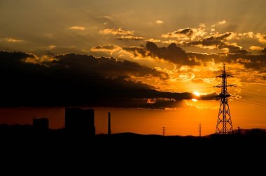 Sunset at a power plant