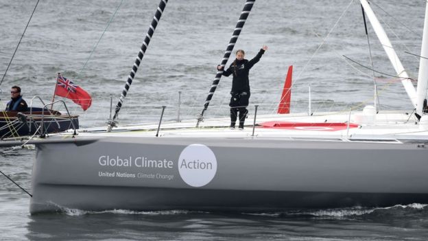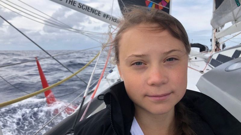 ¶ “Greta Thunberg, Climate Change Activist, Sails Into New York City” • Greta Thunberg has arrived in New York after a 15-day, 3,000 mile (4,800 km) voyage across the Atlantic. She will participate in UN climate summits in New York City and Chile. The 16-year-old Swede traveled by sail boat to minimize her carbon footprint. [BBC]