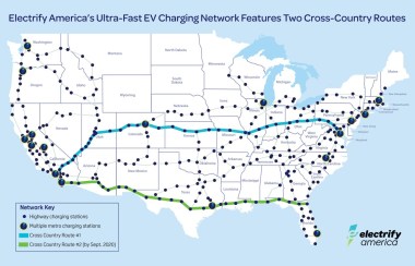 ¶ “You Can Now Drive 100% Electric Across The USA Using Electrify America” • The big Electrify America news is that it has completed its first cross-country route, going from Washington, DC, to Southern California. A second cross-country route will also soon be completed, going across the southern part of the country to Southern California. [CleanTechnica]