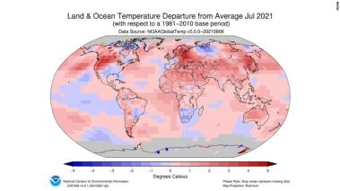 ¶ “July Was The Hottest Month On Record” • We just had the hottest month, as a planet, in any of our lifetimes, and we saw the weather extremes that came with it. The global temperature in July 2021 was the highest for any July in the 142 years of records, according to data released today from NOAA’s National Centers for Environmental Information. [CNN]