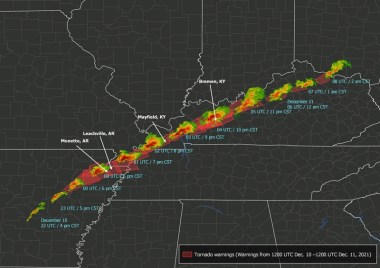 ¶ “More Than 100 Feared Dead After Tornadoes Tear Through Several States” • More than 100 people are feared dead after a series of tornadoes ripped through several states in the Midwest and South and transformed homes and businesses into piles of rubble late Friday into Saturday. It was the deadliest tornado event in Kentucky’s history. [CNN]